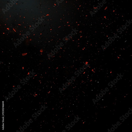 A striking visual of vibrant red and black sprinkles resembling snowflakes scattered across a deep black background, creating a bold and dynamic contrast that captivates the eye.