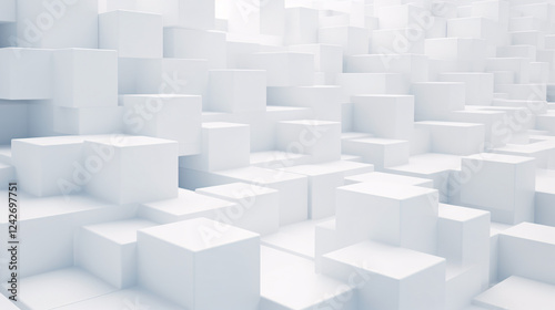 A studio background with many white cubes, realistic 3D design, ideal for a website banner.