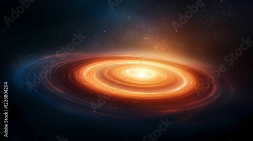 A stunning cosmic image depicting a glowing spiral galaxy with vibrant colors set against a dark, starry background.