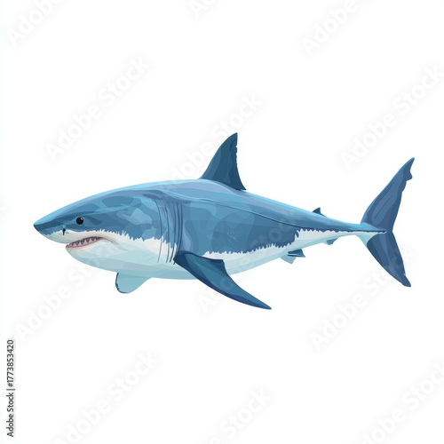A stunning depiction of a great white shark swimming gracefully in the ocean