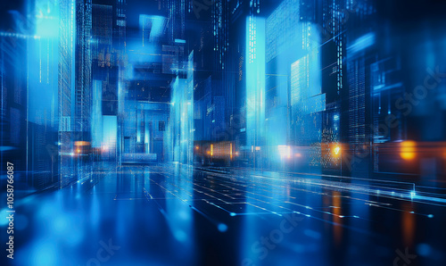 A stunning visual of a futuristic digital grid, featuring vibrant blue tones and glowing elements. This abstract artwork embodies technology and innovation in an immersive landscape.