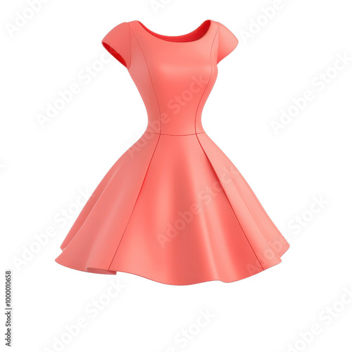 A stylish coral dress with a flattering silhouette, perfect for casual outings or special occasions., isolated on a transparent background.