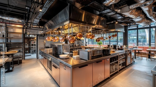 A Stylish Restaurant Featuring Safety Measures and Modern Kitchen Equipment