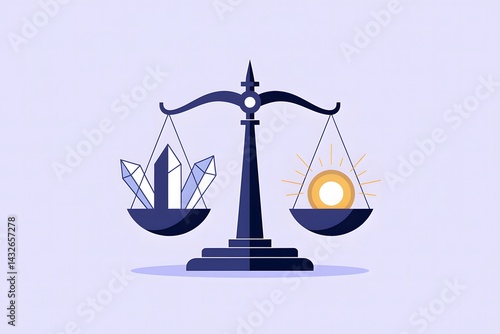 A stylized illustration of a balance scale. Balance of Crystals and Sunshine