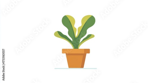 A stylized illustration of a green plant with yellow accents in a terracotta pot against a white background.