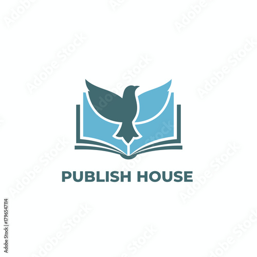 A stylized logo depicts a dove in flight superimposed over an open book, with text below
