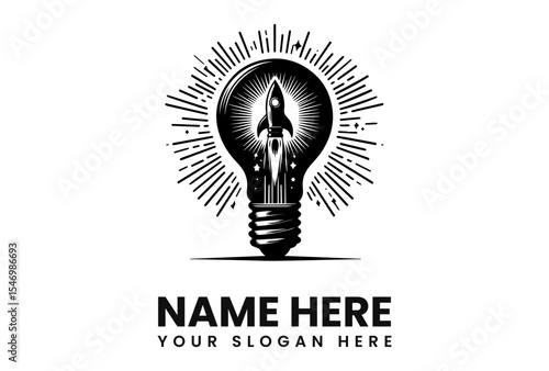 A stylized logo featuring a lightbulb with a rocket inside, radiating outward energy.
