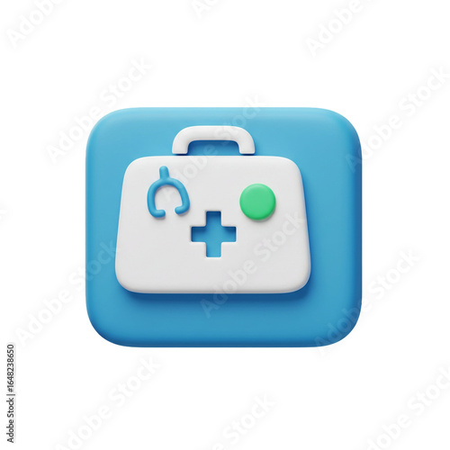 A stylized medical icon featuring a first aid kit with a stethoscope and a cross symbol representing healthcare and assistance.