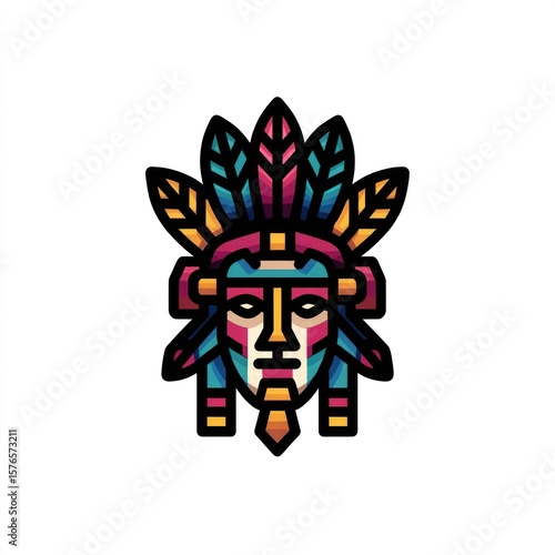 A stylized Native American headdress and face portrait