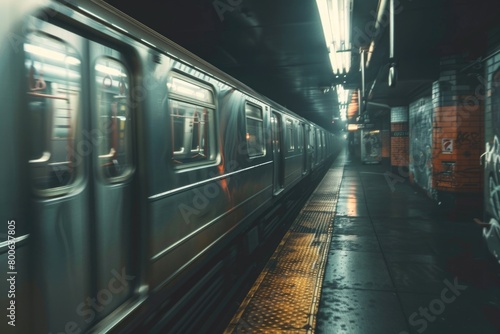 A subway train moving through a busy subway station. Suitable for transportation and urban lifestyle concepts
