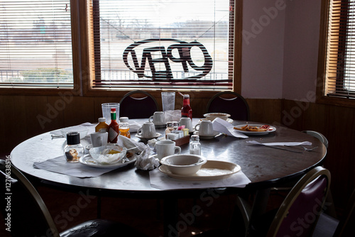 A table in a restaurant after people have finished eating