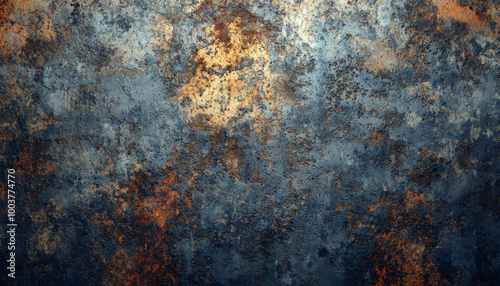 A textured surface featuring rust and wear, showcasing a blend of blue and orange hues, ideal for backgrounds or graphic design.