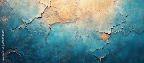 A textured wall featuring cracks and a gradient of blue and orange hues.