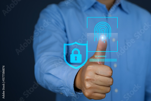 A thumb undergoing a fingerprint scan symbolizes biometric security, digital identification, and secure access control systems.