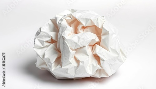 A tightly crumpled ball of white paper, isolated on white background, waste, paper art