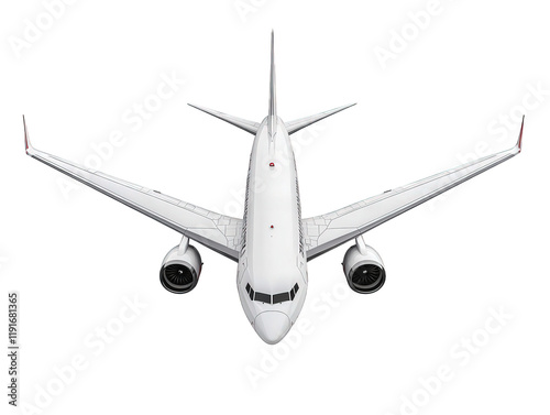 a top-down view of a modern commercial airplane. showcasing its sleek design and prominent engines this representation highlights the aircraft's aerodynamic structure. emphasizing its purpose for air