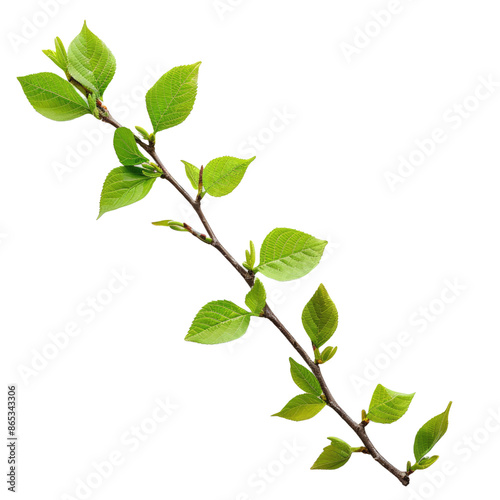 a tree branch with green leaves isolated on a white background