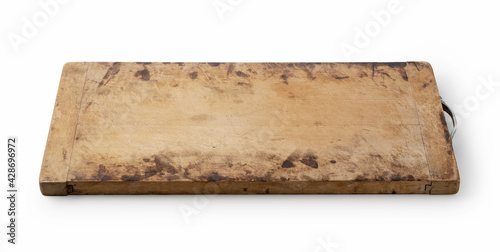 A used cutting board on a white background.