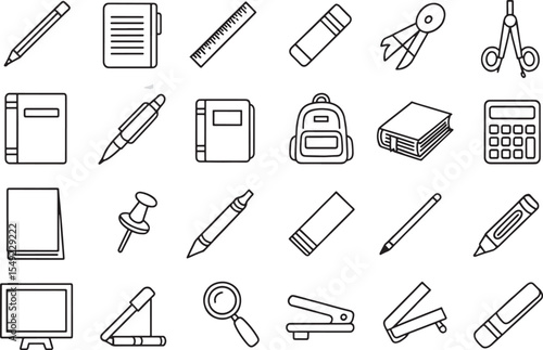 A versatile stationery tools vector icon set for school, art, and design illustrations