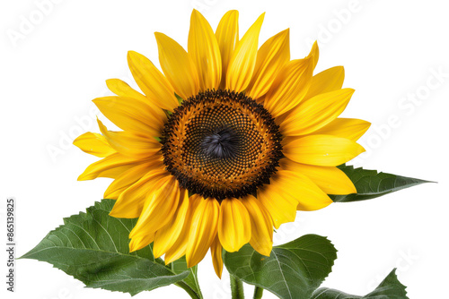 A vibrant and detailed close-up of a bright yellow sunflower isolated on a transparent background