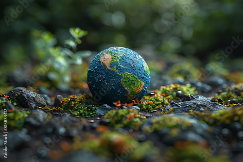 A vibrant blue and green eco Earth globe symbolizes environmental world protection and ecological conservation, promoting the message "Save the Planet" for Earth Day celebrations