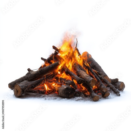 A vibrant bonfire burning brightly amidst the snow a perfect winter scene featuring burning logs and flames