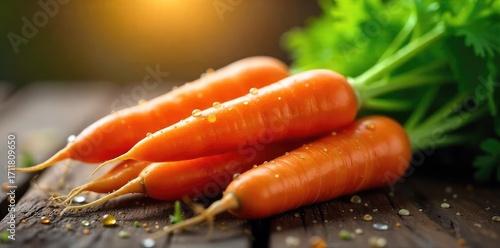 A vibrant bunch of fresh carrots, glistening with morning dew, ready for Sunday brunch preparation Perfect for healthy eating, recipes, and springtime themes , healthy eating, sunday brunch