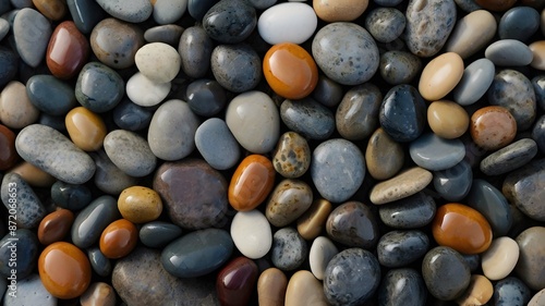 A vibrant collection of multicolored OR Colorful pebbles scattered across the rugged ground, Rock wall and stone background . Generate Ai
