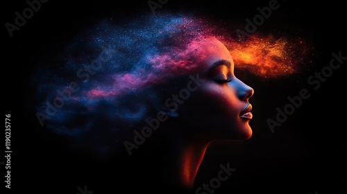 A vibrant color explosion forming a profile of an embracing figure, symbolizing creativity on a black background