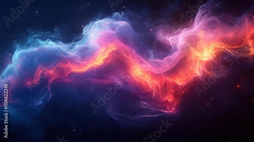 A vibrant cosmic nebula with swirling clouds of pink, orange, and blue, set against a dark backdrop, evoking a sense of wonder and the vastness of space.