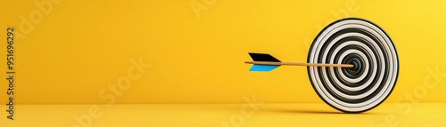 A vibrant dartboard with an arrow striking the center, symbolizing focus, precision, and target achievement on a bright yellow background.