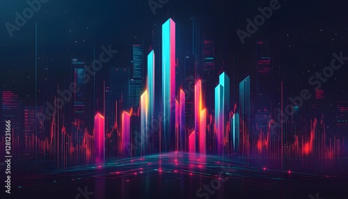 A vibrant digital landscape showcasing colorful skyscrapers and dynamic light patterns, representing the pulse of modern technology and innovation in a futuristic cityscape.