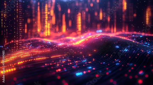 A vibrant display of multicolor glowing data set against an abstract digital landscape, highlighting technological evolution and futuristic aesthetics.