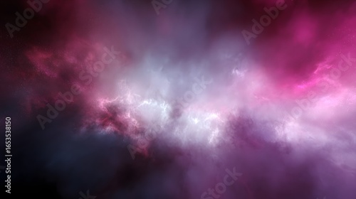 A vibrant display of swirling, ethereal nebulae, showcasing a dynamic interplay of deep purples, pinks, and whites.