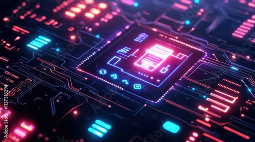 A vibrant, futuristic circuit board design highlighting technology and digital innovation.