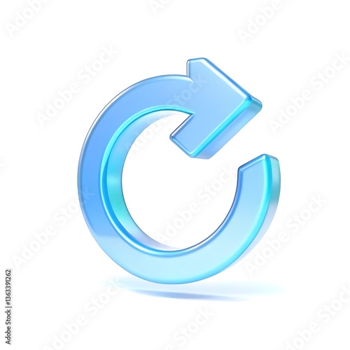 A vibrant, glossy blue circular arrow signifying renewal, progress, and continuous improvement with a 3D glassy effect against a clean white background.