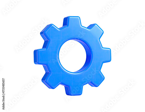A vibrant, glossy blue gear rendered against a stark black background