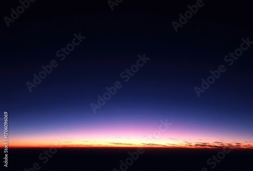 A vibrant gradient sky transitions from deep blue to a bright pink horizon, accented by subtle clouds and a dark, indistinct ground below