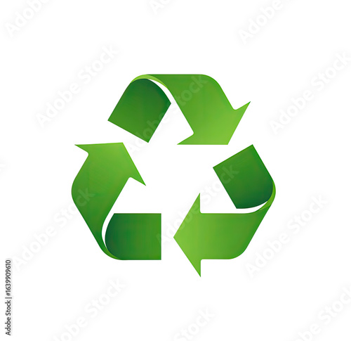 A vibrant green recycling symbol. A circular, three-arrowed motif, representing environmental responsibility. Bold, smooth curved arrows form a continuous loop. The image is easily recognizable