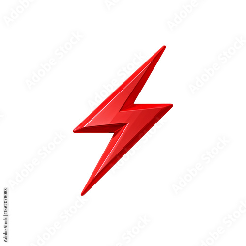 A vibrant red lightning bolt symbol against a stark black backdrop conveys power, energy and high voltage, ideal for technological or warning designs, transparent background