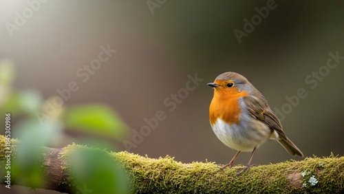 A vibrant robin perched on a mossy branch in a natural setting