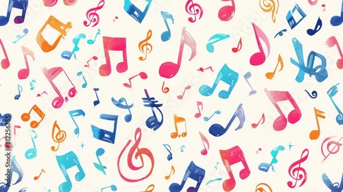 A vibrant seamless pattern of colorful musical notes perfect for scrapbooking crafts prints and beyond