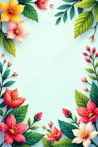 A vibrant spring vector background with colorful leaves and blooming flowers, colorful, vibrant, nature
