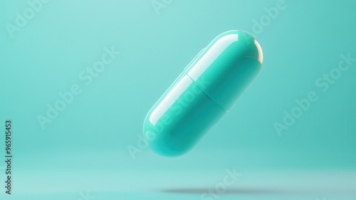 A vibrant turquoise capsule floating in a minimalistic background, symbolizing health and wellness in modern medicine.