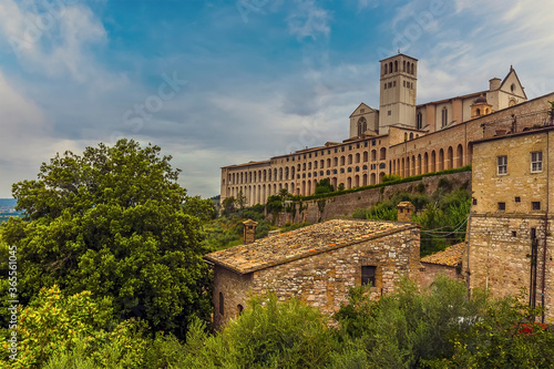 A view across Assissi, Umbria towards the Basilica of Saint Francis in summertime