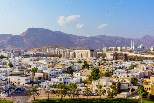 A view across Muscat, Oman towards the distant mountains in late summer