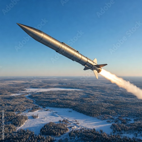 A view of a ballistic missile flying through the sky