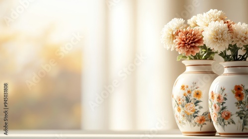 A vintage-style vase with hand-painted floral motifs, showcasing flowers that depict the cycle of seasons, rich colors and textures