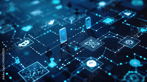 A visual of blockchain technology investment, with symbols of decentralized finance, cryptocurrency, and digital assets driving financial growth.