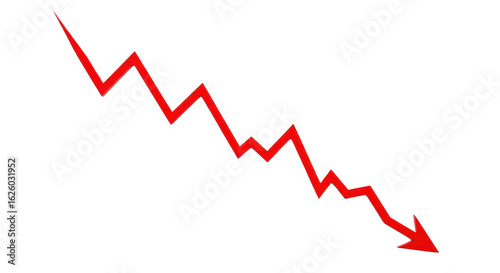 A volatile red line graph with a sharp downward arrow indicating a financial recession.